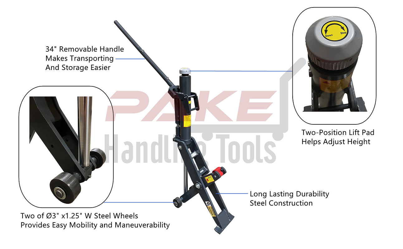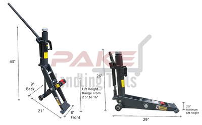 Pake Handling Tools PAKHJ02 Hydraulic Forklift Jack 15400 lb Capacity 2.5" - 16.5" Lift Range New