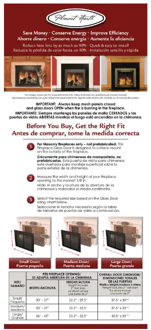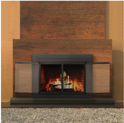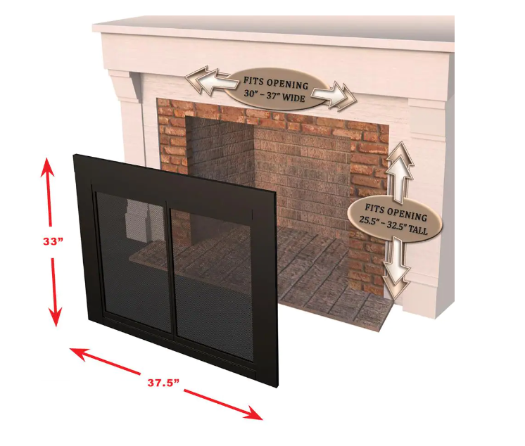 Pleasant Hearth Alpine Medium 32.5 by 37.5 in. Opening Glass Fireplace Doors Black New