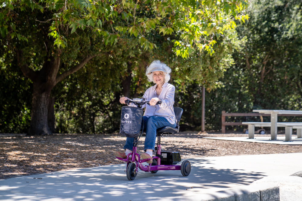 The Reyhee Triad R300 Electric Foldable Mobility Scooter is a compact three-wheel scooter equipped with puncture-proof tires and a 200W motor capable of speeds up to 3.5 MPH. Two included batteries allow you to ride longer, simply swap out the batteries when one runs out of power. This scooter is complete with features like height adjustable seat and handlebar, LED headlight, and a max range of up to 4 miles on a single battery.