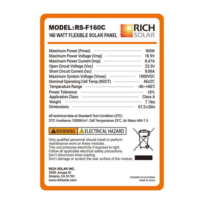 Rich Solar RS-F160C 160 Watt CIGS Flexible Solar Panel New