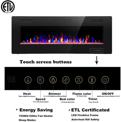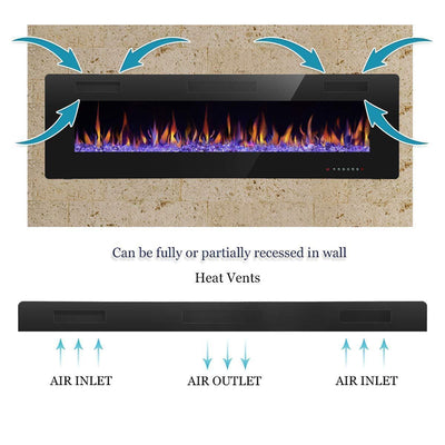 RW Flame 868C 750W-1500W 68 Inch Recessed and Wall Mounted Electric Fireplace With Remote Control Black New