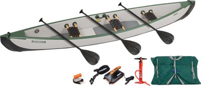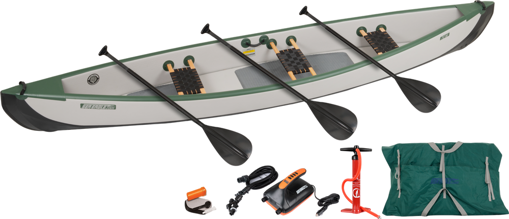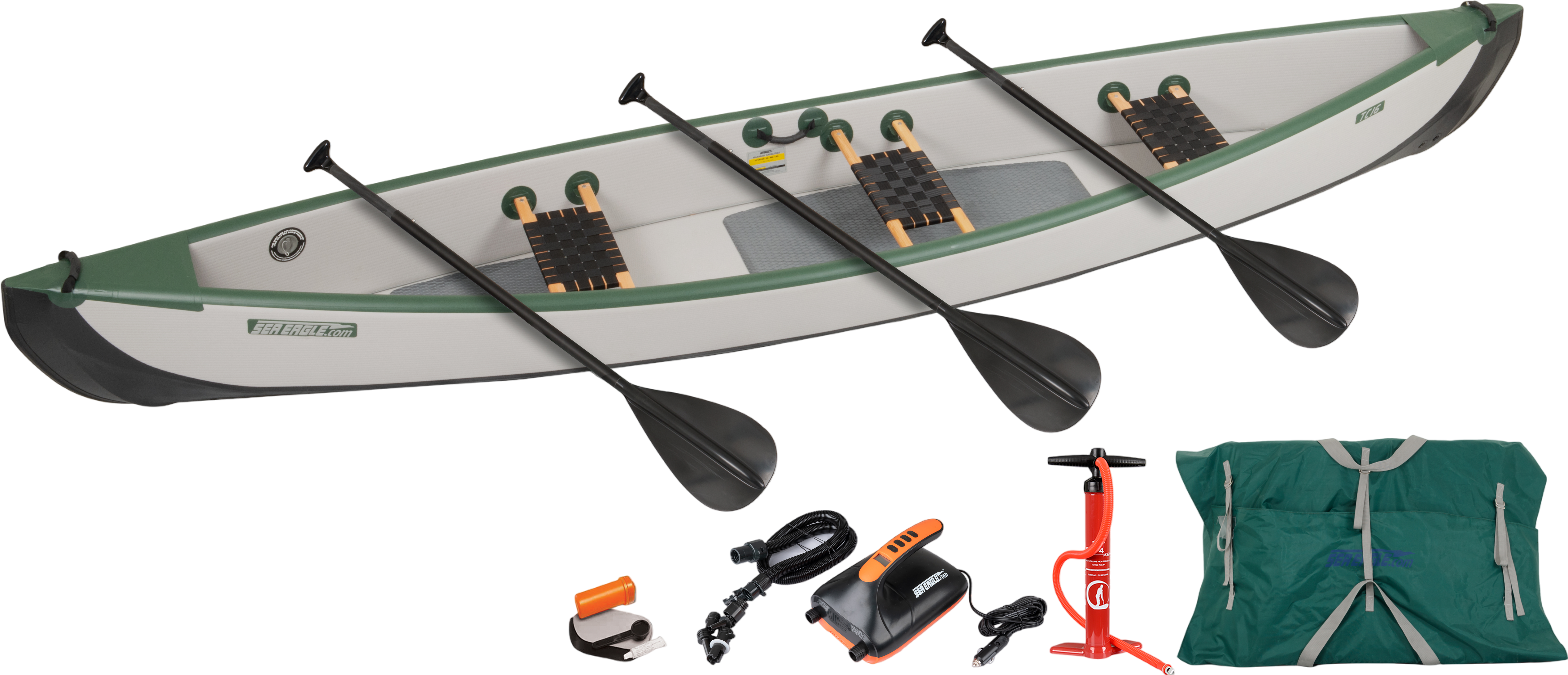 Sea Eagle TC16K_EP3W Inflatable Travel Canoe Wood/Web Seats Electric Pump for 3 Package New