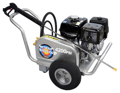 Designed to meet the rigorous demands of the cleaning professional, the SIMPSON® Aluminum Water Blaster series frame is crafted of aircraft-grade aluminum, making it lighter in weight than most steel frame pressure washer designs. Perfect for contractors who specialize in deck cleaning, wood restoration, paint preparation, graffiti removal, and all other professional cleaning services. The SIMPSON Aluminum Water Blaster series designed for optimum performance in the harshest environments. Equipped with a premium HONDA® engine and a reliable CAT PUMP®.