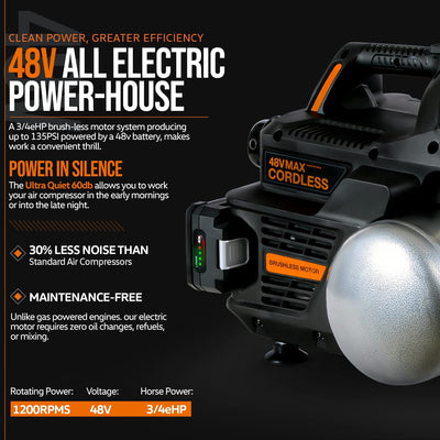 Super Handy GUO070 48V 2Ah Battery 2 Gal 135 PSI Portable Electric Air Compressor New