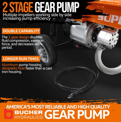 • The heart of our hydraulic system is a 2-Stage Bucher Gear Pump. Bucher has been innovating in hydraulics since it's inception in 1923! We have entrusted them to provide us with their pumps, to give you the reliable experience you deserve. Coupled with our Rapid Auto return hydraulic ram, split logs as fast as you can load them!