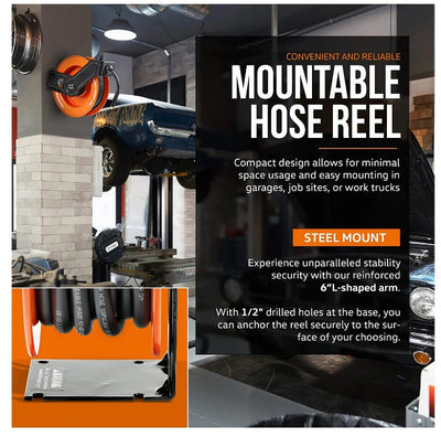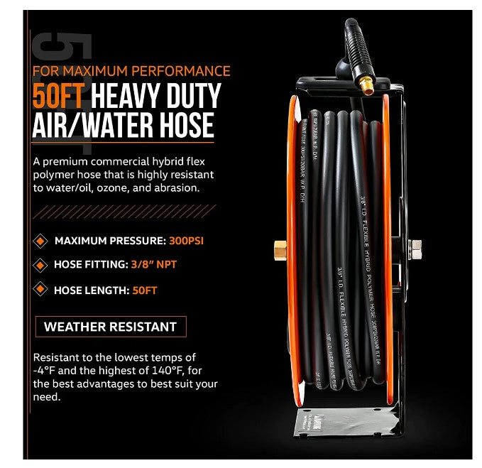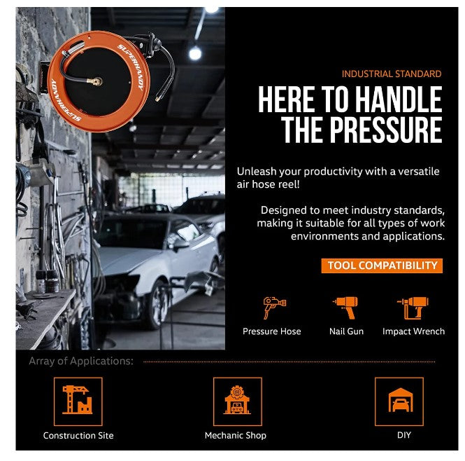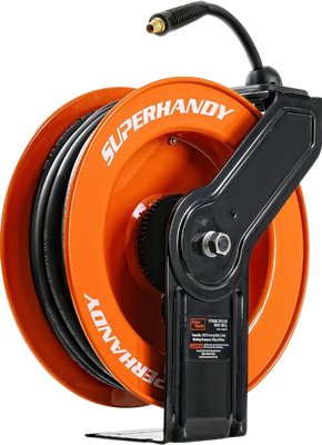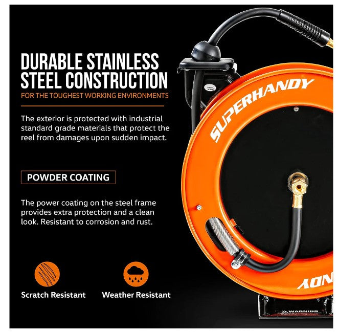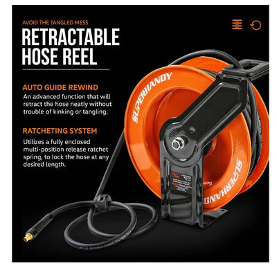 Super Handy GUR075 Retractable Air Hose Reel Single Arm 3/8" x 50' 1/4" NPT Connections New