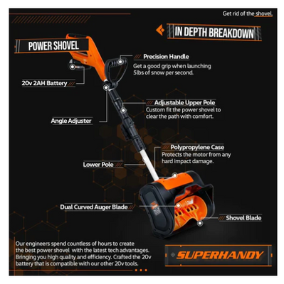 Super Handy GUT132 20V 4Ah Cordless Battery Electric Snow Thrower and Shovel New