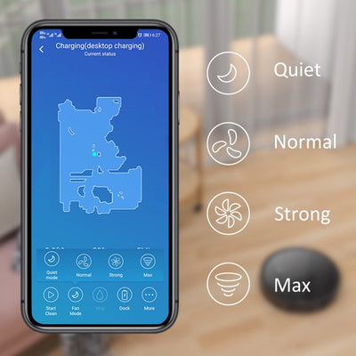 Tesvor M1 Robot Vacuum adopts innovative Supclean technology to achieve an incredibly high 4000Pa suction which removes most pet hair, dust, dirt, and crumbs on your hard floors and carpets. It has 4 modes you can adjust via an app. Choose from Quiet, Normal, Strong, and Max modes.