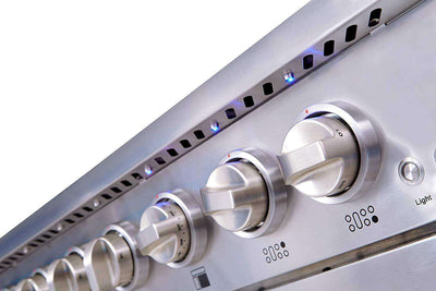 - Heavy-duty cast iron cooking grates compliment sealed gas burners.