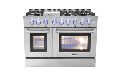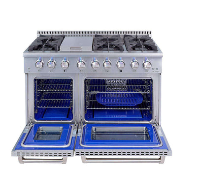 Thor Kitchen HRG4808U 48 in. Professional Gas Range with Double Oven 6 Burners Blue Porcelain Interior Stainless Steel New