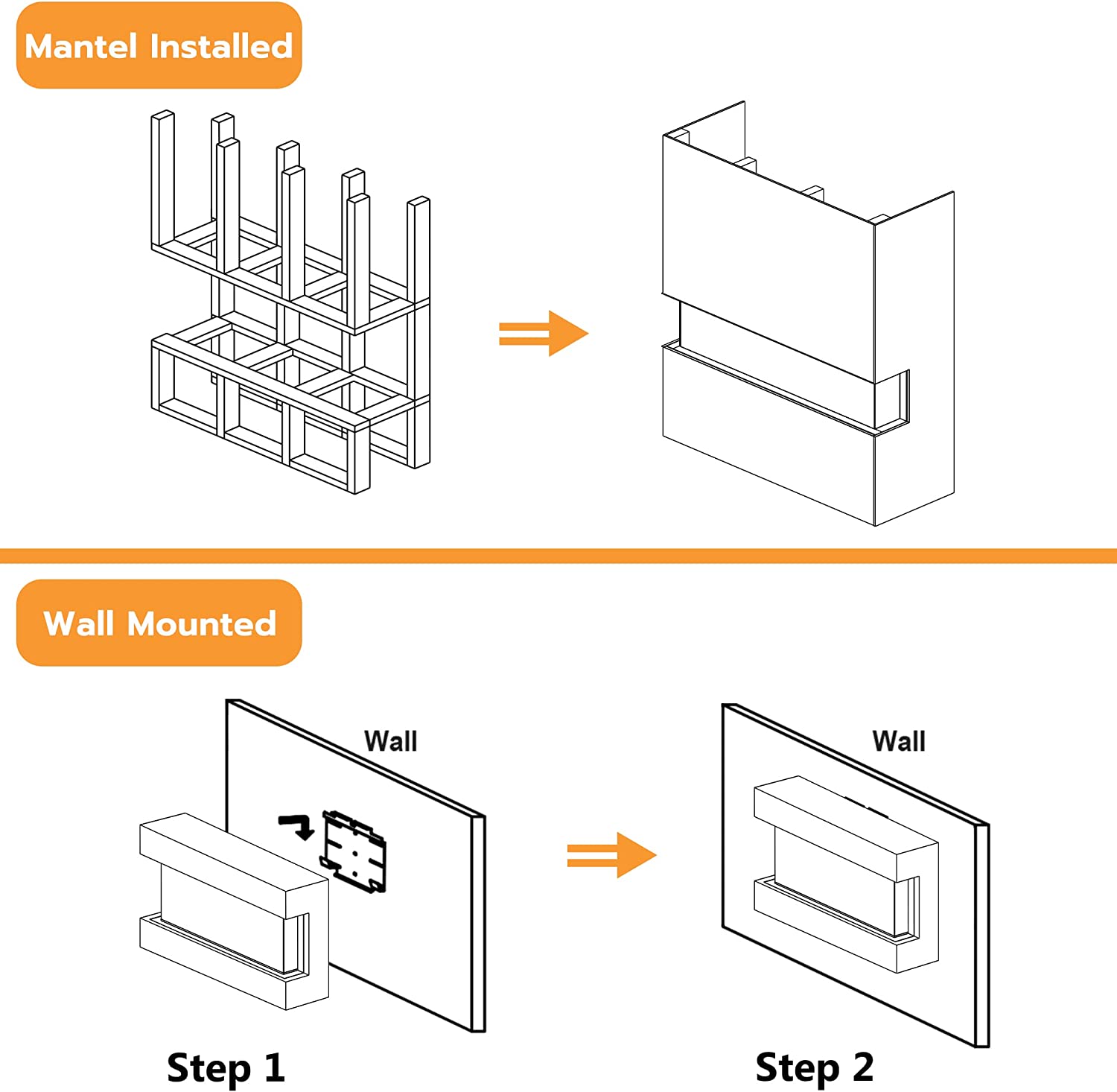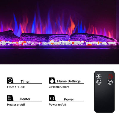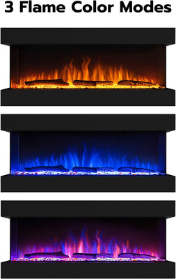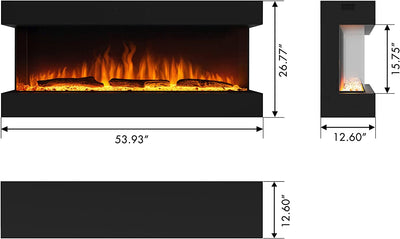 Valuxhome TS50 54 in. 1500W 3-Sided Recessed and Wall Mounted Electric Fireplace with Remote LED Lights Logs and Crystals Black New
