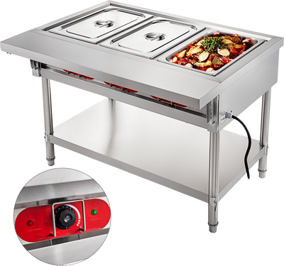 Vevor Commercial Electric Food Warmer 3 Pan Steam Table 18QT 1500W New
