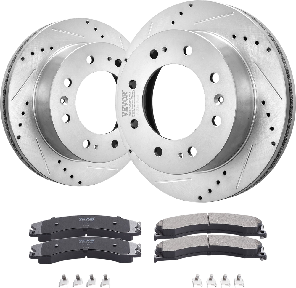 This front brake kit ensures easy installation for compatible models. Featuring HT250 cast iron brake rotors with a galvanized surface, this set is built to withstand rough roads and impacts. These brake pads are made from high-performance ceramic materials, offering high friction, heat resistance, and wear resistance. They prevent thermal decay and wear caused by braking. Compatible with 2011-2019 Chevrolet Silverado 2500 HD, 3500 HD, 2016-2018 Chevrolet Suburban 3500 HD, 2011-2019 GMC Sierra 2500 HD, 3500 HD.