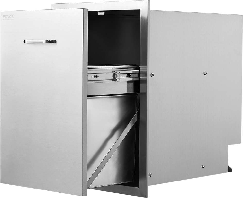 Vevor Pull Out Trash Drawer Stainless Steel for Outdoor Kitchen 17.7" x 22.8" New