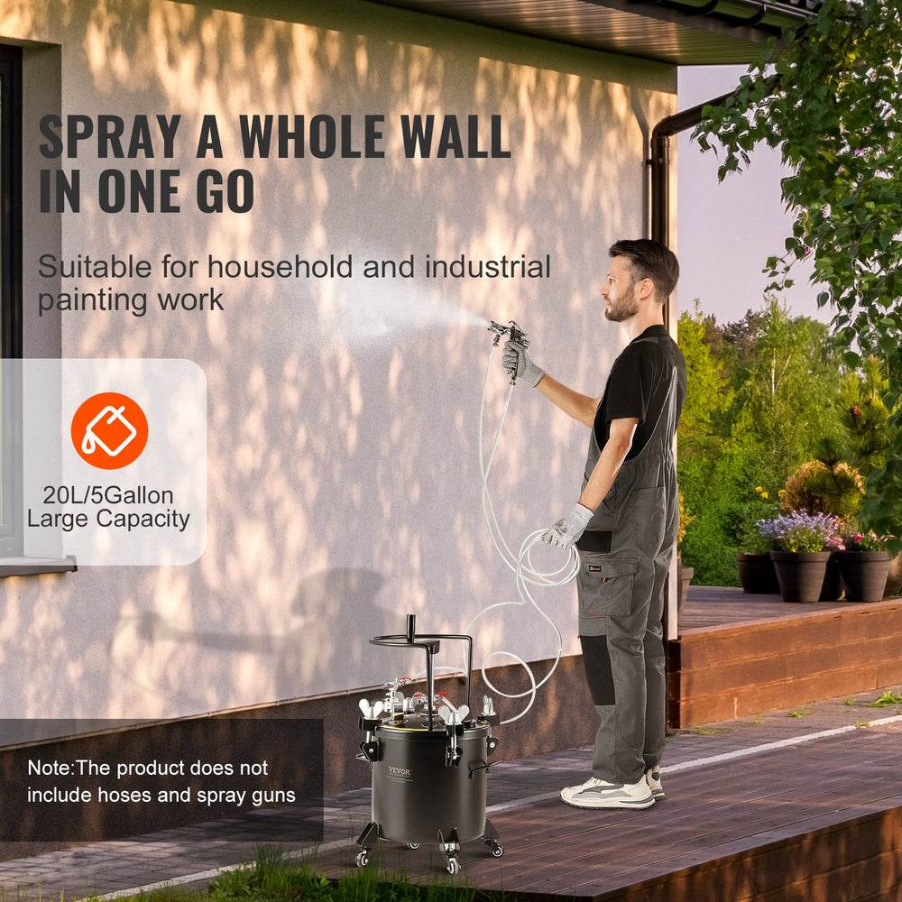 Vevor Spray Paint Pressure Pot Tank 5 Gal with Manual Mixing 70 PSI Adjustable Pressure New