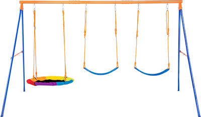 Vevor Swing Set for Backyard 1 Saucer 2 Belt Seats A-Frame Metal Stand New