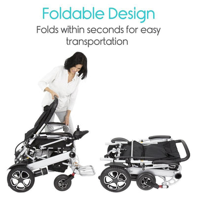 Vive Health MOB1029L Power Wheelchair Foldable 265 lbs. Capacity 24V Li-Ion Battery 3.7 MPH 9.3 Miles TSA Approved New