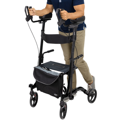 Safely Walk Upright - Aiding in mobility, the upright rollator walker eliminates tension in the shoulders and neck and allows users to look forward