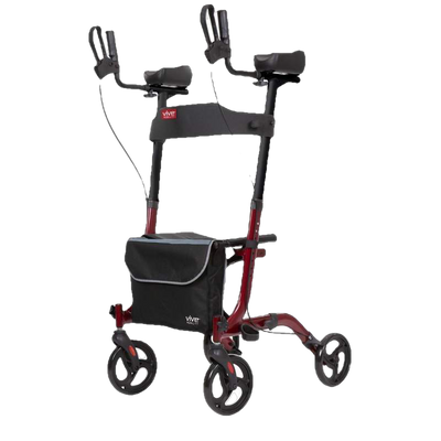 Providing comfort and stability while walking, the Vive upright walker features tall adjustable handles to eliminate hunched shoulders and promote proper posture. Each arm rail is height and length adjustable and features soft, contoured armrests and textured hand grips for greater control and comfort. The lightweight aluminum walker weighs approximately 20 pounds and is compact when folded for easy travel.