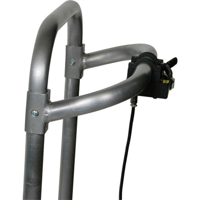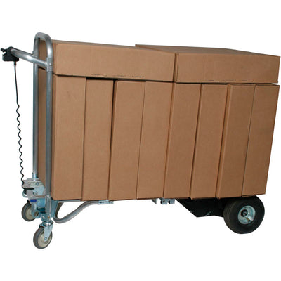 Motorized drive hand truck helps reduce operator strain and fatigue, and increase productivity. Power drive works in both the hand truck and platform truck positions. Battery powered hand truck utilizes variable speed fingertip throttle control with forward and reverse, and can be disengaged for manual operation.