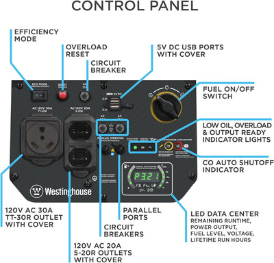 Westinghouse iGen4500cv Inverter Generator 3700W/4500W 30 Amp Recoil Start Gas with CO Sensor New