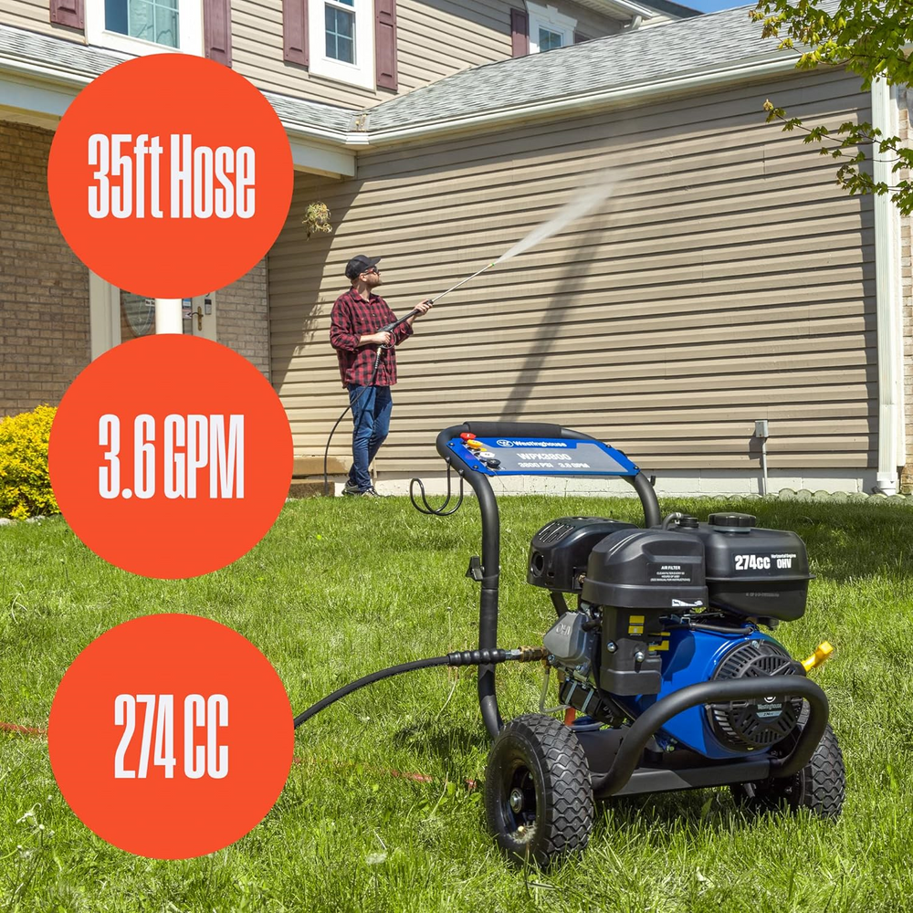 - Delivering 3800 PSI and 3.6 GPM of pressure with a maintenance-free axial cam pump