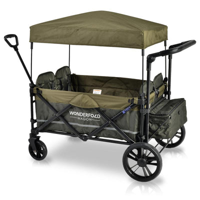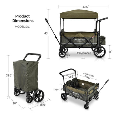 WonderFold Baby X4S Push/Pull 4-Passenger Quad Double Stroller Wagon with Automatic Magnetic Seatbelt Buckles Green New